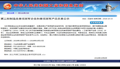 10 月8 日,工业和信息化部产业政策司公布了《关于第三批制造业单项冠军企业和单项冠军产品名单公示》,新疆开云手机站登录入口-开云online(中国)公司根据《关于印发< 制造业单项冠军企业培育提升专项行动实施方案> 的通知》(工信部产业〔2016〕105 号)和《关于组织推荐第三批制造业单项冠军企业和单项冠军产品的通知》(工信厅联产业函〔2018〕19 号)要求,组织材料申报了制造业单项冠军产品- 异亮氨酸,截至目前已顺利通过审核并公示,公示于10 月15 日结束。异亮氨酸单项冠军产品的成功授予, 将形成全球市场、技术等方面领先的单项冠军地位,提升新疆开云手机站登录入口-开云online(中国)公司的国际竞争力。